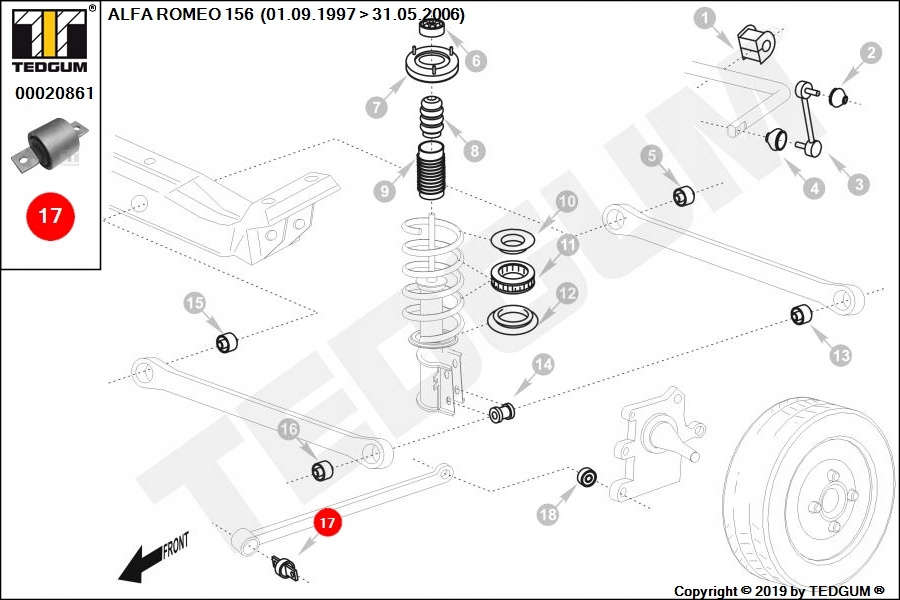 TULEJA WAHACZASILENTBLOCK WAHACZA TYŁ L/P (PO STRONIE NADWOZIA TYŁ) PASUJE DO: ALFA ROMEO 147, 156 1.6-3.2 02.97-03.10Informacje dodatkowe: Gwarantowana jakość i dopasowanie. Możliwość dopasowania części na podstawie numeru VIN (funkcja dostępna w ramach
