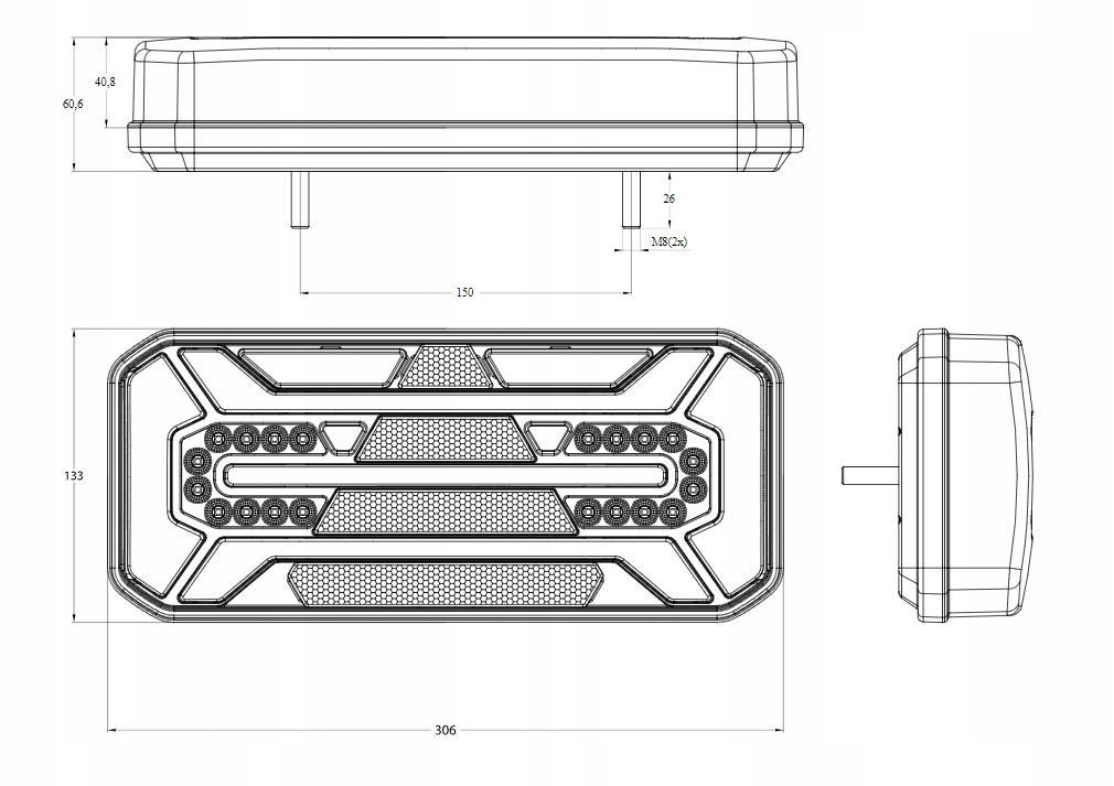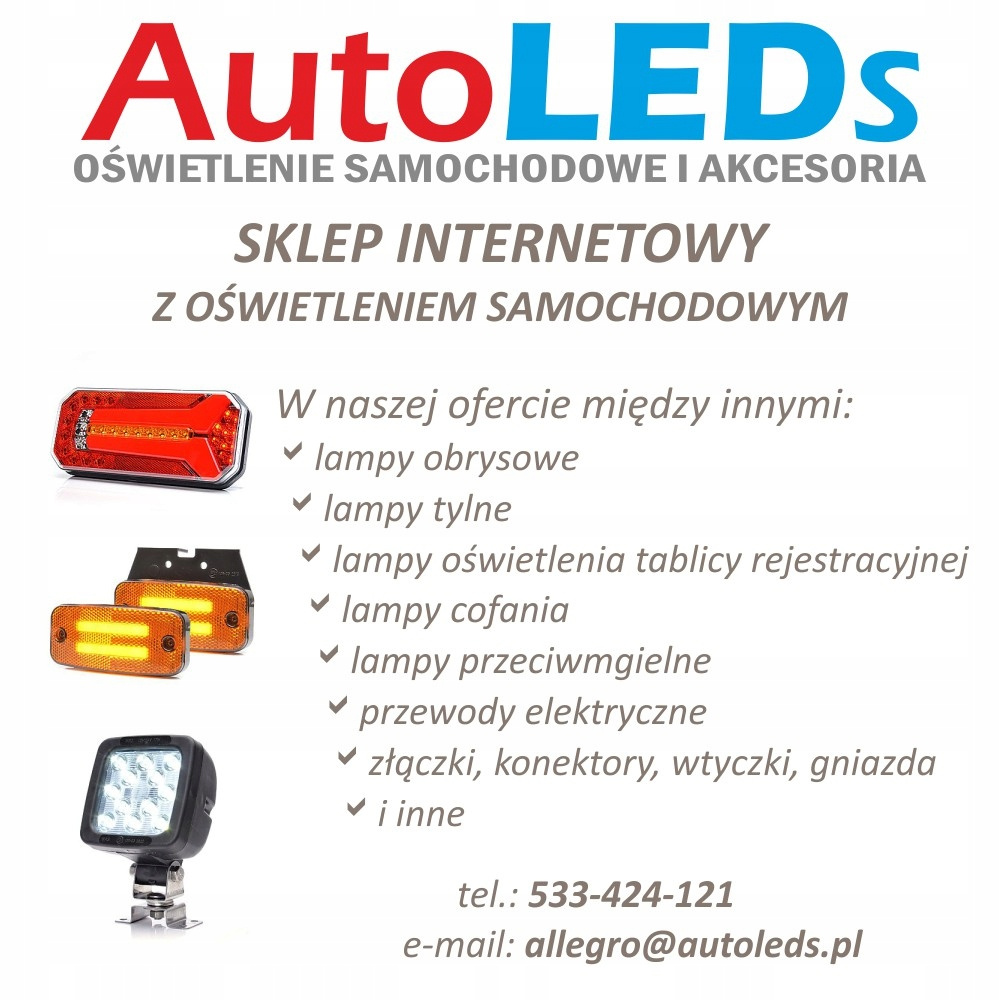 LAMPA TYLNALAMPA TYŁ L (LED, 12/24V, Z KIERUNKOWSKAZEM, ZE ŚWIATŁEM PRZECIWMGIELNYM, ZE ŚWIATŁEM COFANIA, ZE ŚWIATŁEM STOPU, ŚWIATŁO POZYCYJNE, ODBLASK TRÓJKĄTNY, OBRYSOWE BOCZNE, DYNAMICZNY KIERUNKOWSKAZ, DŁUGOInformacje dodatkowe: Gwarantowana jakość
