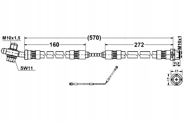 PRZEWÓD HAMULCOWY ELASTYCZNYPRZEWÓD HAMULCOWY ELASTYCZNY TYŁ P (DŁ. 272/570MM/160MM, M10X1,5/M10X1) PASUJE DO: BMW X5 (E53) 3.0-4.8 01.00-10.06Informacje dodatkowe: Gwarantowana jakość i dopasowanie. Możliwość dopasowania części na podstawie numeru VIN