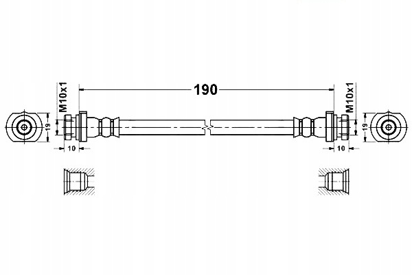 PRZEWÓD HAMULCOWY ELASTYCZNY TYŁ L/P (DŁ. 190MM, M10X1/M10X1) PASUJE DO: NISSAN MICRA II, QASHQAI I, QASHQAI II 1.0-2.0D 08.92-