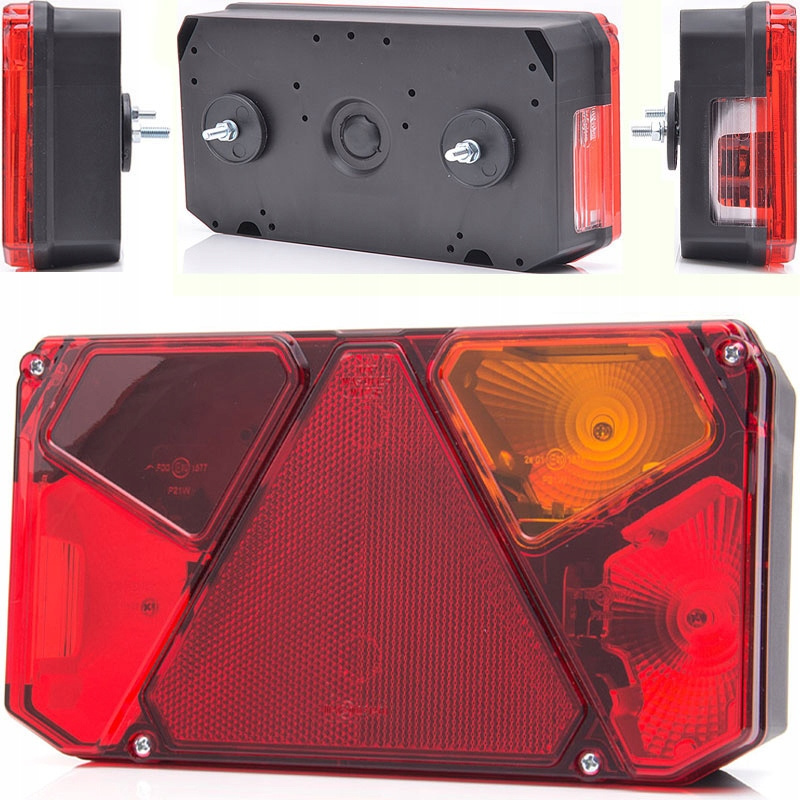 LAMPA TYLNALAMPA TYŁ P (Z KIERUNKOWSKAZEM, ZE ŚWIATŁEM STOPU, ŚWIATŁO POZYCYJNE, Z PODŚWIETLENIEM TABLICY, ODBLASK TRÓJKĄTNY, Z PRZELOTKĄ NA PRZEWÓD)Informacje dodatkowe: Gwarantowana jakość i dopasowanie. Możliwość dopasowania części na podstawie numeru