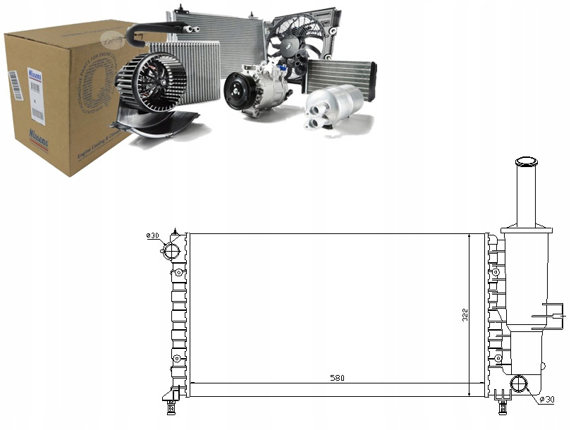 CHŁODNICA SILNIKA (MANUALNA) PASUJE DO: FIAT PUNTO, PUNTO/HATCHBACK, PEUGEOT 206 1.1/1.2/1.4 09.98-12.12