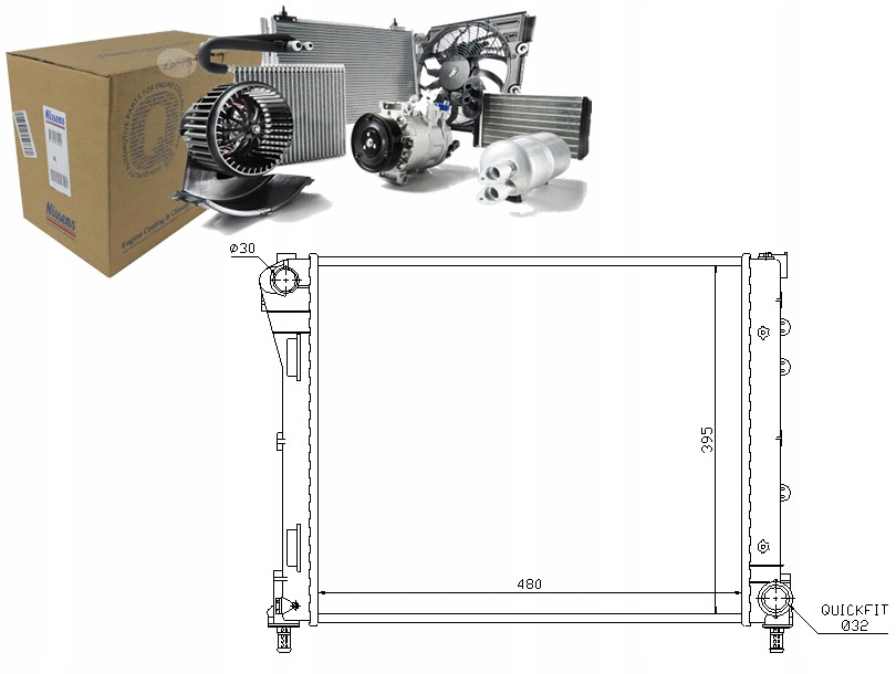 CHŁODNICA SILNIKA PASUJE DO: FIAT 500, 500 C, PANDA, FORD KA 0.9-1.4 10.07-