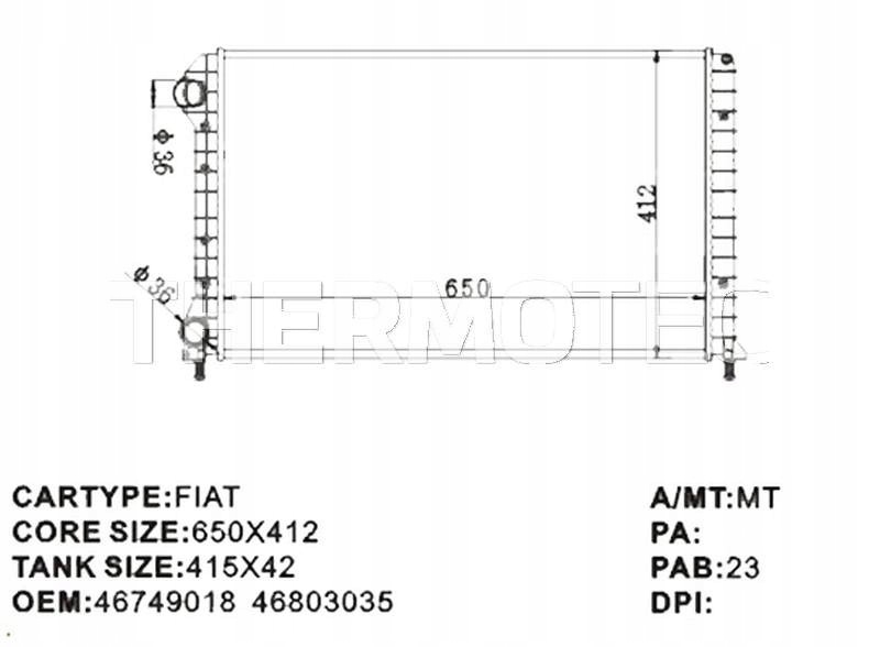 CHŁODNICA SILNIKA (MANUALNA) PASUJE DO: FIAT DOBLO, DOBLO/MINIVAN 1.4-1.9D 03.01-