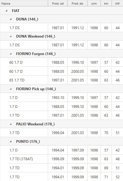 PASEK ROZRZĄDUPASEK ROZRZĄDU PASUJE DO: FIAT DUNA, FIORINO, FIORINO/MINIVAN, PALIO, PENNY/KOMBI, PUNTO, STRADA, UNO, INNOCENTI ELBA 1.3D/1.7D 06.83-Informacje dodatkowe: Gwarantowana jakość i dopasowanie. Możliwość dopasowania części na podstawie numeru