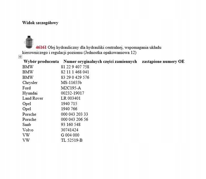 OLEJ LHMOLEJ LHM LHM (1L) (0,95 KG) , BMW 8122 9407 758, BMW 8211 1468 041, BMW 8329 0429 576, GM 1940766, OPEL 19 40 766, VW G 004 000, VW TL 525 19 BInformacje dodatkowe: Gwarantowana jakość i dopasowanie. Możliwość dopasowania części na podstawie
