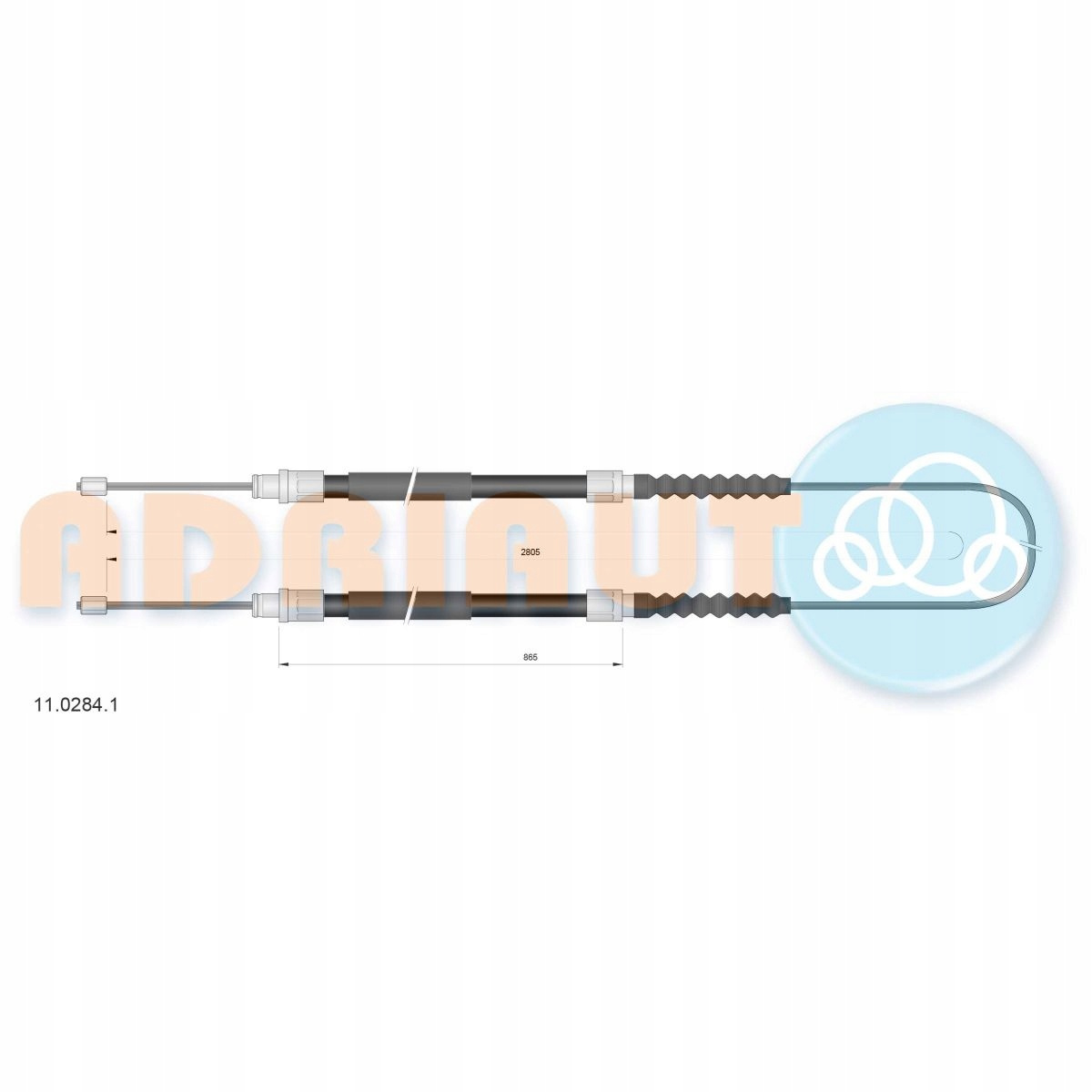 LINKA HAMULCA RĘCZNEGO TYŁ L/P (2825MM/865MM/865MM) PASUJE DO: CITROEN JUMPER I, FIAT DUCATO, PEUGEOT BOXER 1.9D-2.8D 02.94-04.02