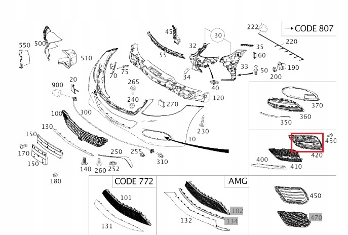 (pasuje do zderzaka standardowego, nie AMG Line)
