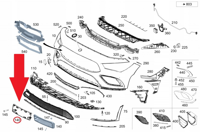 Lewy Ślizg zderzaka przód Mercedes W238