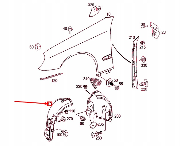 Osłona nadkola lewego przedniego A2116980130 – Mercedes E-Klasa W211