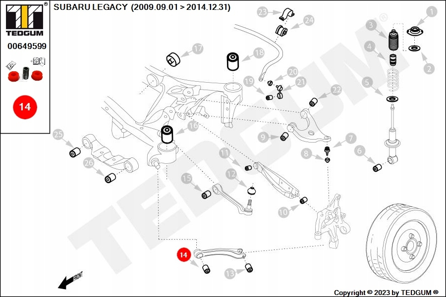 POLIURETANOWA TULEJA, 1SZT., WAHACZ WZDŁUŻNY TYŁ, L/P, PRZÓD, TWARDOŚĆ: 80 SHA, , PASUJE DO: SUBARU FORESTER, IMPREZA, LEGACY V, OUTBACK 1.5-3.6 09.07-