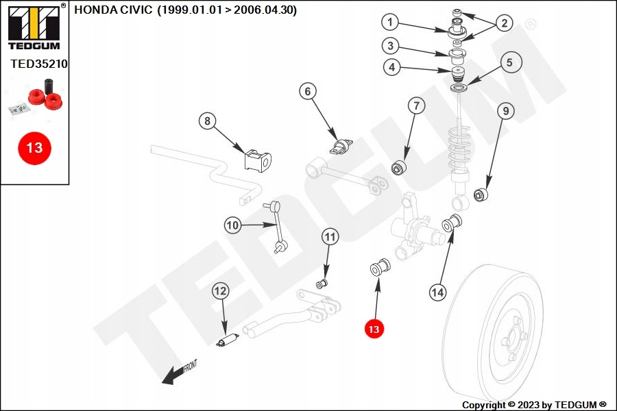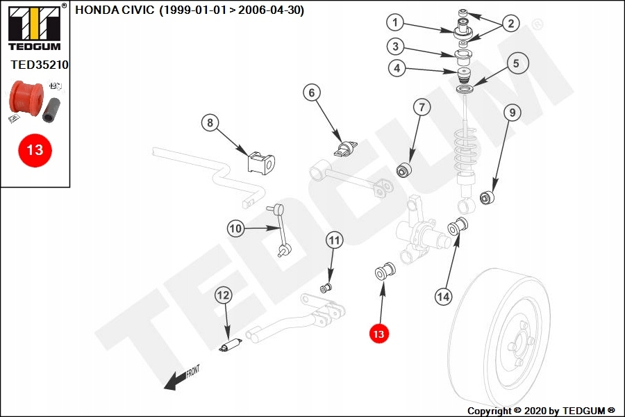 POLIURETANOWA TULEJA ZAWIESZENIA, 1SZT., OŚ TYLNA/ZWROTNICA, L/P, PRZÓD, TWARDOŚĆ: 80 SHA, , PASUJE DO: HONDA CIVIC VII, CR-V II 1.3H-2.2D 11.00-09.06