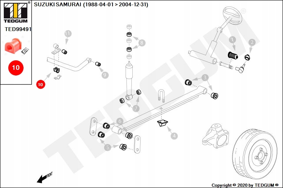 TULEJE ZAWIESZENIA L/P, 1SZT., MIEJSCE ZABUDOWY: PRZÓD/WEWNĄTRZ, STABILIZATOR/WEWNĘTRZNA, TWARDOŚĆ: 70 SHA PASUJE DO: SUZUKI SAMURAI, SJ410, SJ413 1.0/1.3 09.81-12.04