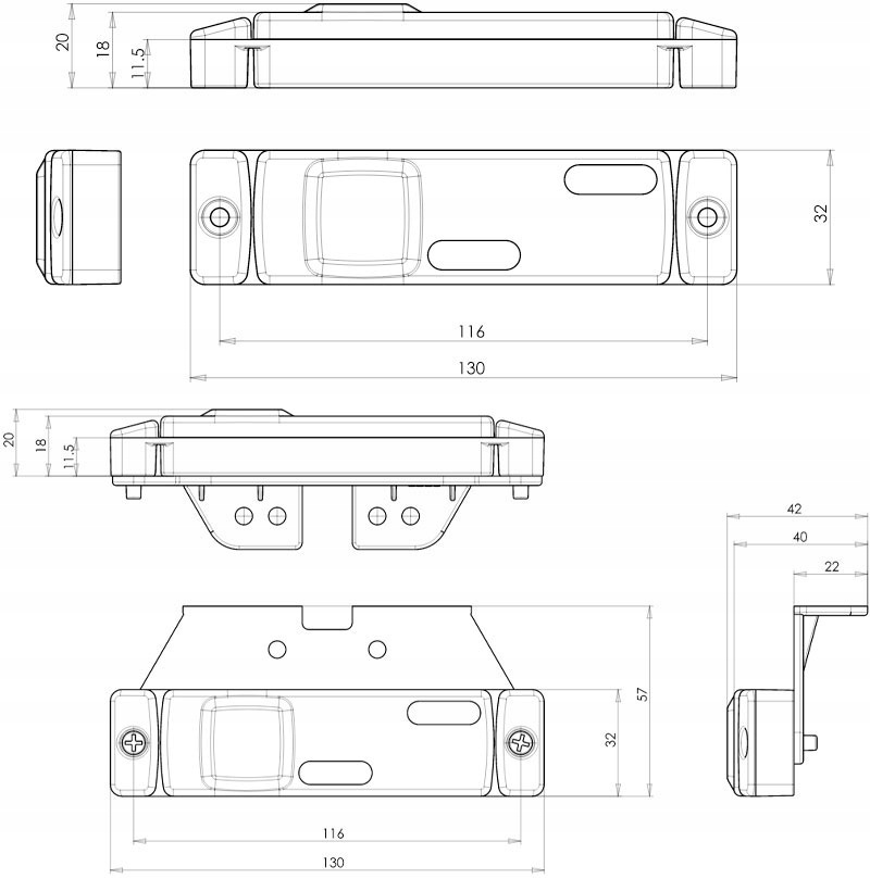 ŚWIATŁO OBRYSOWE L/P, CZERWONY, LED, WYS. 32MM, SZER. 130MM, GŁ. 20MM, PODWIESZANA, DŁUGOŚĆ PRZEWODU 210MM, Z WIESZAKIEM, 12/24V